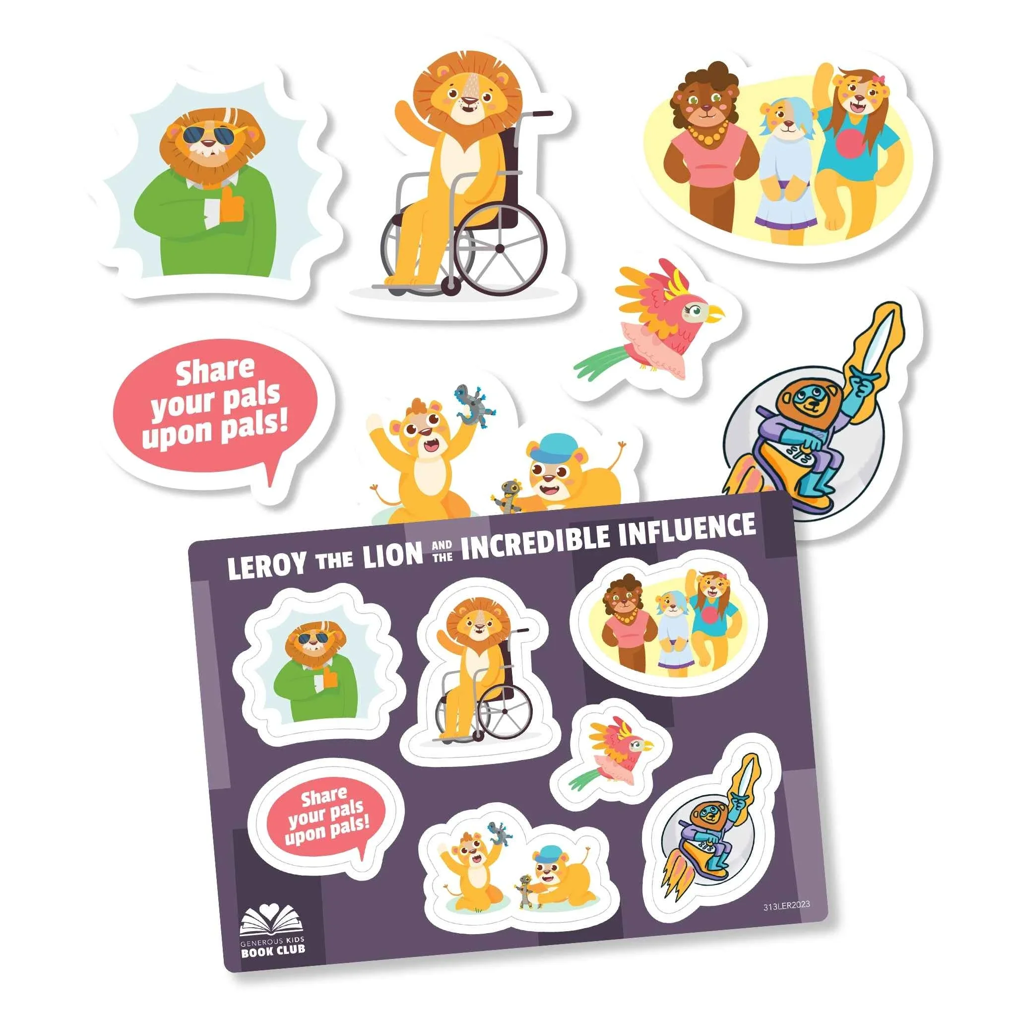 In this set you'll receive 3 sticker sheets and 1 character collectors card which pair with the beloved book Leroy the Lion and the Incredible Influence!