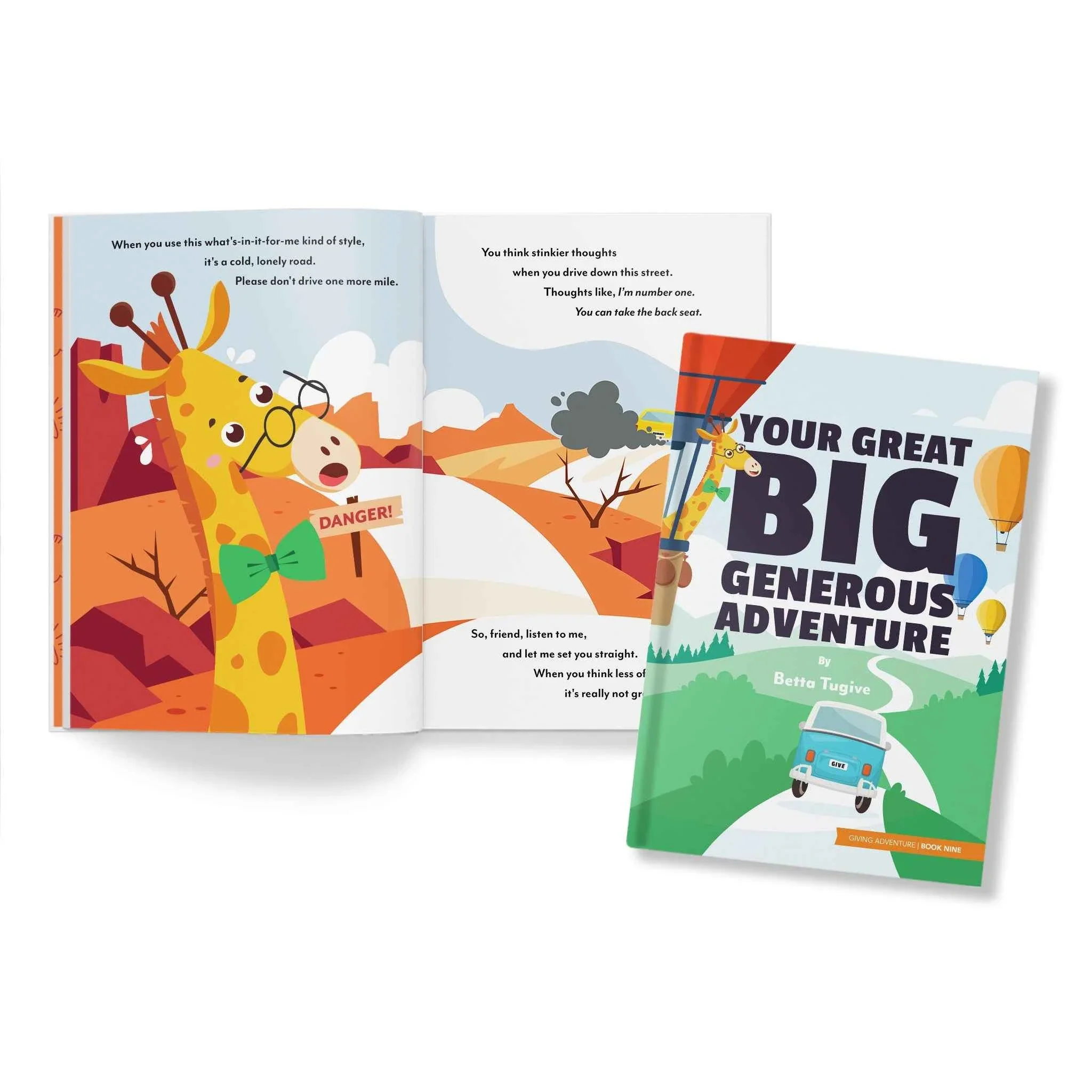Jump into your great big generous adventure with Jasper G the Generosity Giraffe! He'll give you pointers as you learn how to navigate life and avoid taking a selfish, me-thinking detour! The YOU that YOU are will make this world bright!